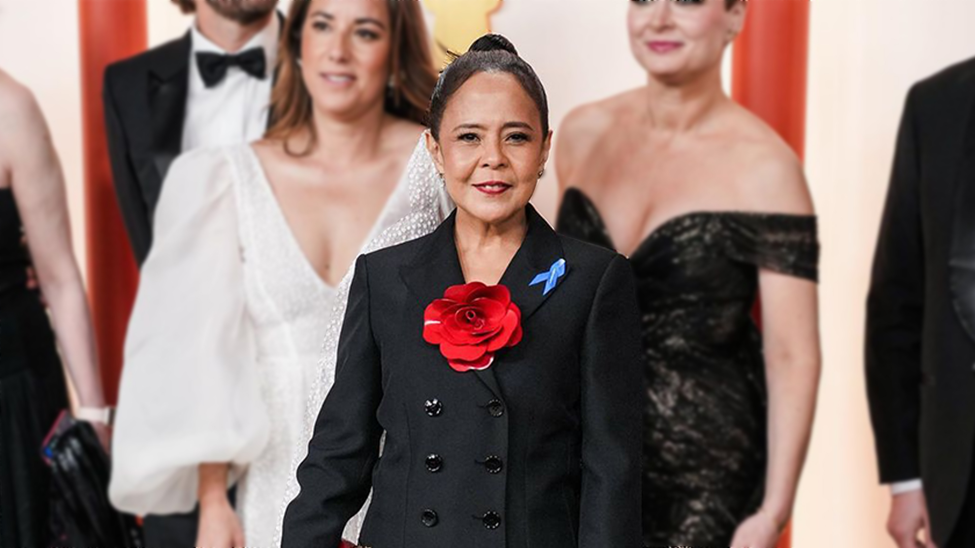Dolly de Leon slayed the red carpet for this year’s Oscars as she arrived wearing a casual black suit with an accent of rose-parted red heels and half-gloves.